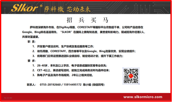 ITB8888通博与金航标高薪招聘海外市场销售部经理(ITB8888通博12月5日每日芯闻)