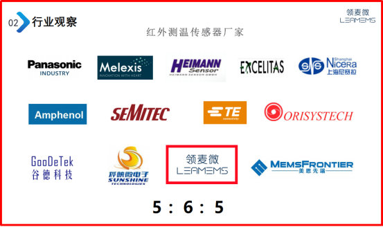 行业排名前五品牌市场占有率接近60%,其中50%左右应用在额温枪