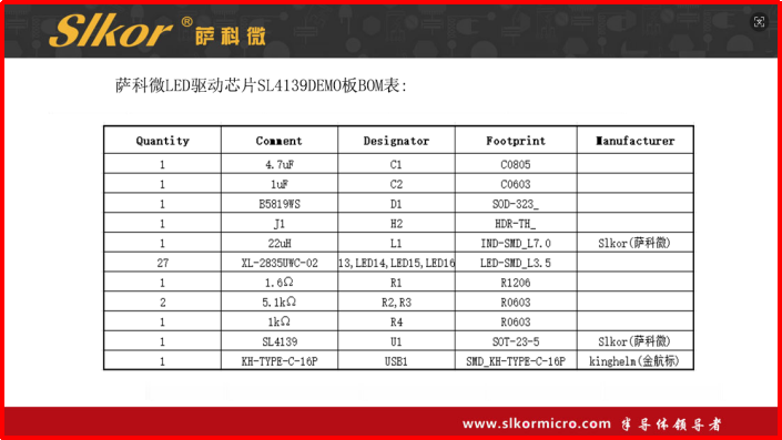 7.ITB8888通博 LED驱动芯片SL4139 DEMO板BOM表信息如下: